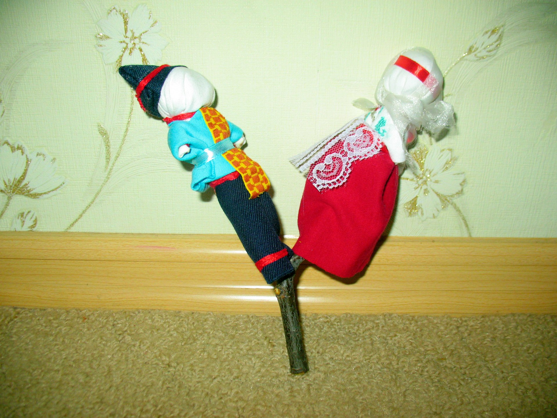 4. Кукла "Неразлучники" - объединяет в себе мужскую и женскую фигурки, у которых одна общая рука, как символ того, что отныне двое будут всегда вместе, поровну разделив между собой все радости и печали, которые им суждено повстречать на долгом жизненном пути.